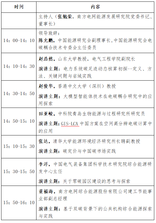 分會場一:電碳耦合技術創(chuàng)新研討會日程