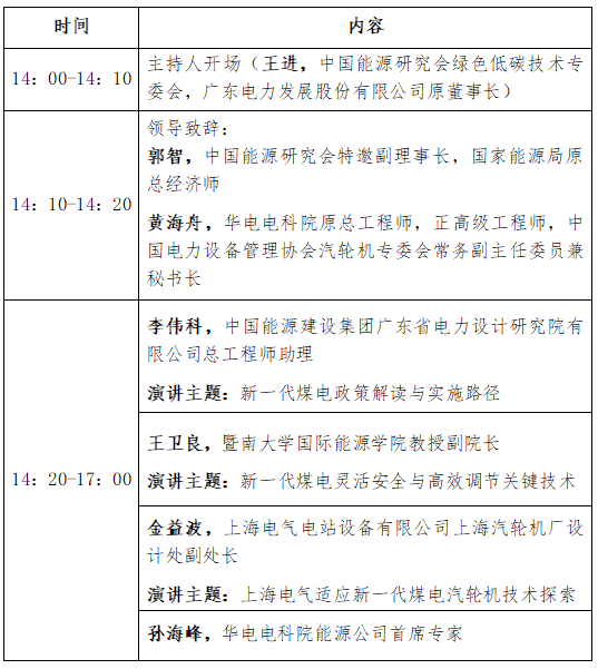 分會場三:新一代火電減碳技術創(chuàng)新研討會日程